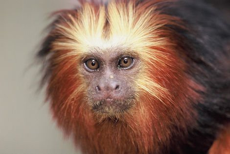 Originaire de la région de Bahia dans les forêts primaires d'Amazonie, son nom lui vient de la couleur dorée qui couvre la crinière, les avants bras et une partie de la queue. Il est le primate le plus imposant de la famille des Callitrichidés. Il vit en communauté de plusieurs mâles et femelles ou en groupe monoparental. Son espérance de vie est de 15ans, même si dans la nature ce chiffre est moindre pour cause de braconnage et déforestation qui l'ont conduis jusqu'au danger d'extinction.